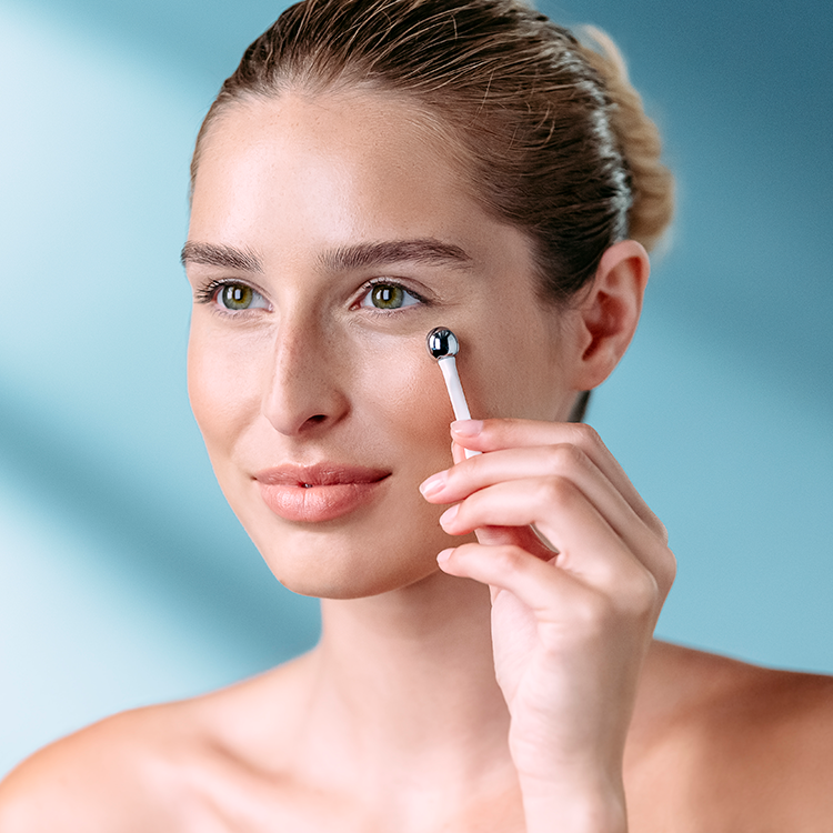 Ergonomically designed, ideal for a massage around the eyes. It stays cool to the touch while providing consistently correct pressure to facial muscles.